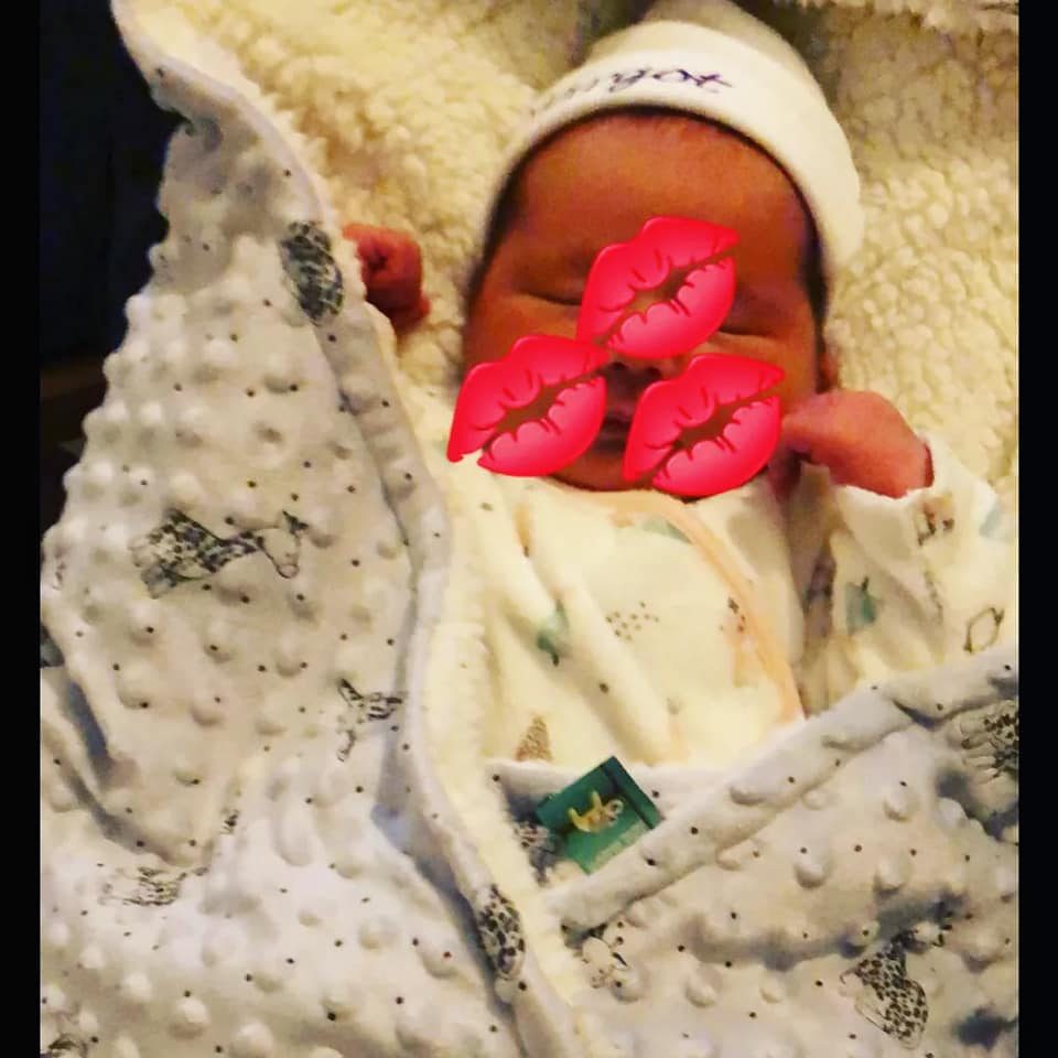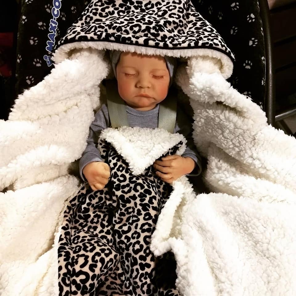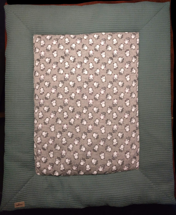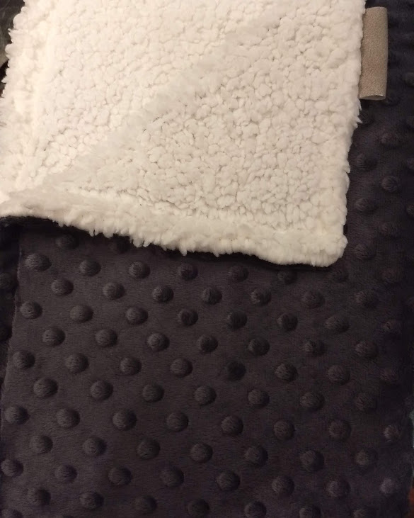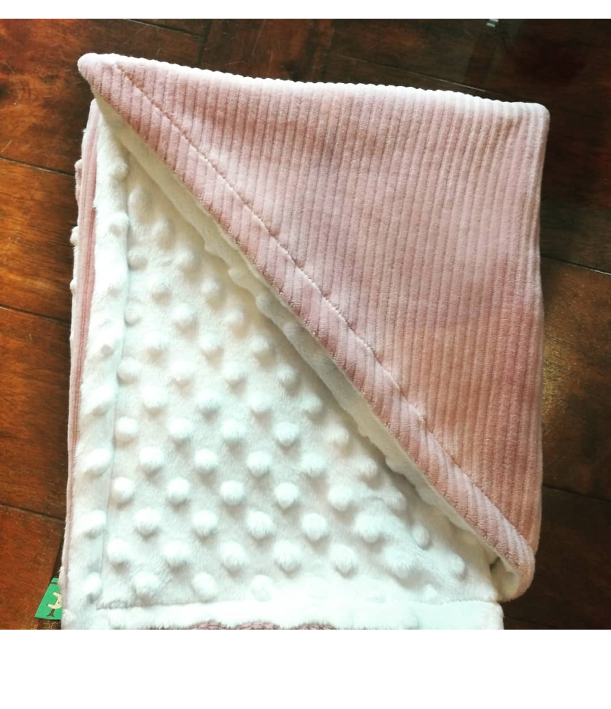 Dit wiegdekentje is gemaakt van zacht minky fleece en gebreid katoen. Grootte: 75cm x 100cm €25,00