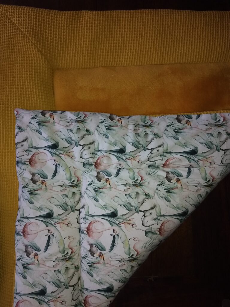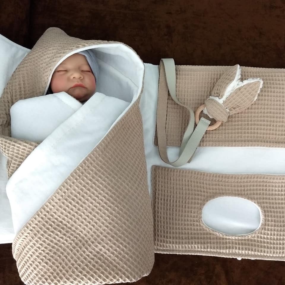 De wikkeldeken gemaakt van wafelstof met nicky velours, hier gecombineerd met een verzorgingsmatje/verschoningsetui, is zeer zacht en comfortabel. Neem hem mee naar het zwembad, op vakantie of thuis om je baby in te wikkelen.
